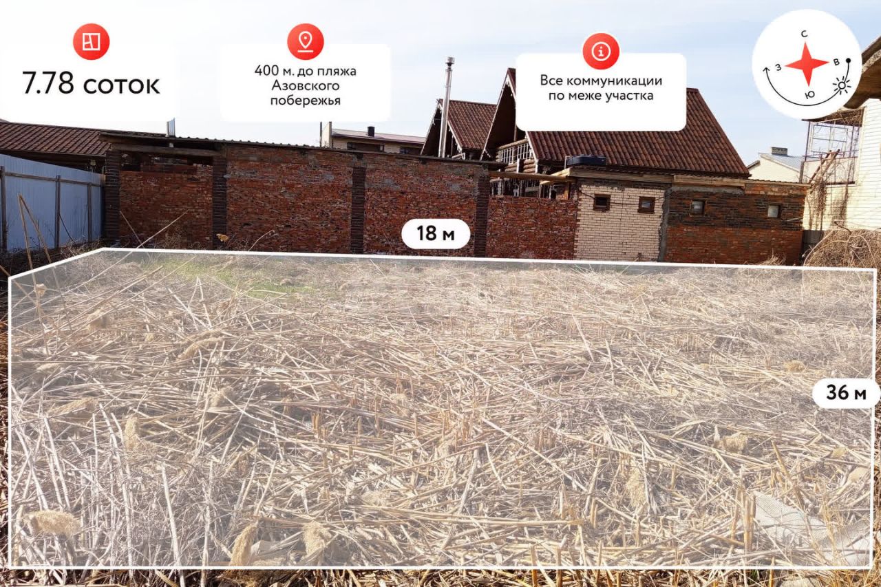 В курортной станице Голубицкая Краснодарского края продается участок площадью 7.78 сотки!
