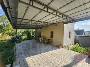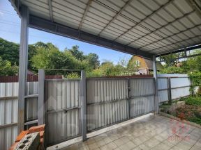 При входной зоне имеется большой навес из металлопрофиля с установленным освещением. Удобное место парковки с заездом на 2 машины. Забор обеспечивающий комфорт и безопасность.
