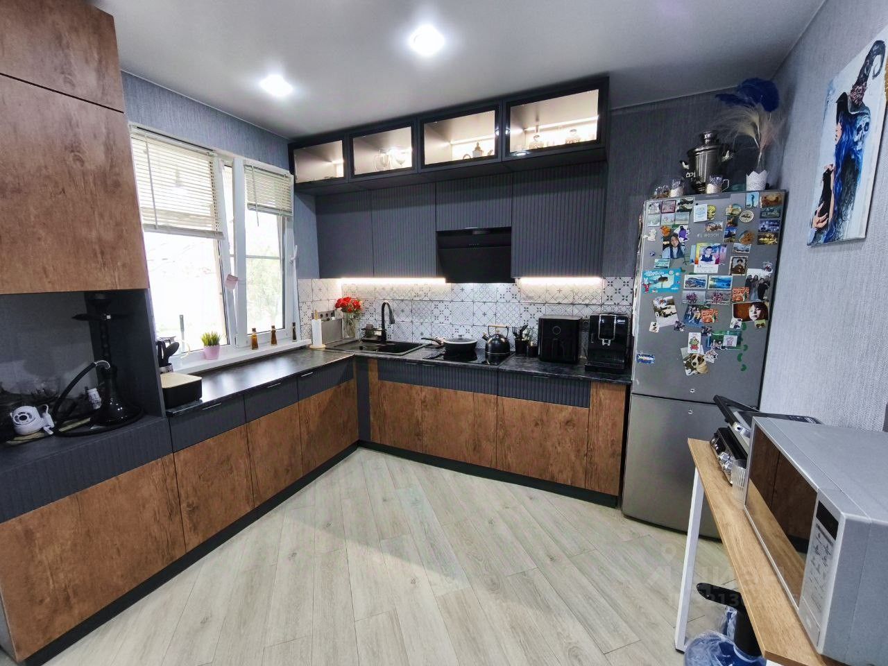 В доме выполнен качественный ремонт. Два выхода. Один из них выводит на просторную террасу со стороны двора. Очень много встроенной мебели.