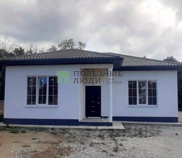 Дом 1 этажный: кухня-гостиная с витражным остеклением с выходом на террасу, 3 спальни, ванная, прихожая.