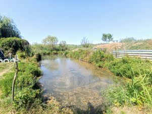 Из хоз.построек: кирпичный гараж, сараи, теплица, уличные удобства. Канализация - септик. Большой земельный участок о.п. 25 соток, с плодовыми деревьями и кустарниками. Огород имеет выход к реке Бузинка. Металлопрофильный забор, ширина фасада 14,1 м.. перед двором много места для стоянки автомобилей.