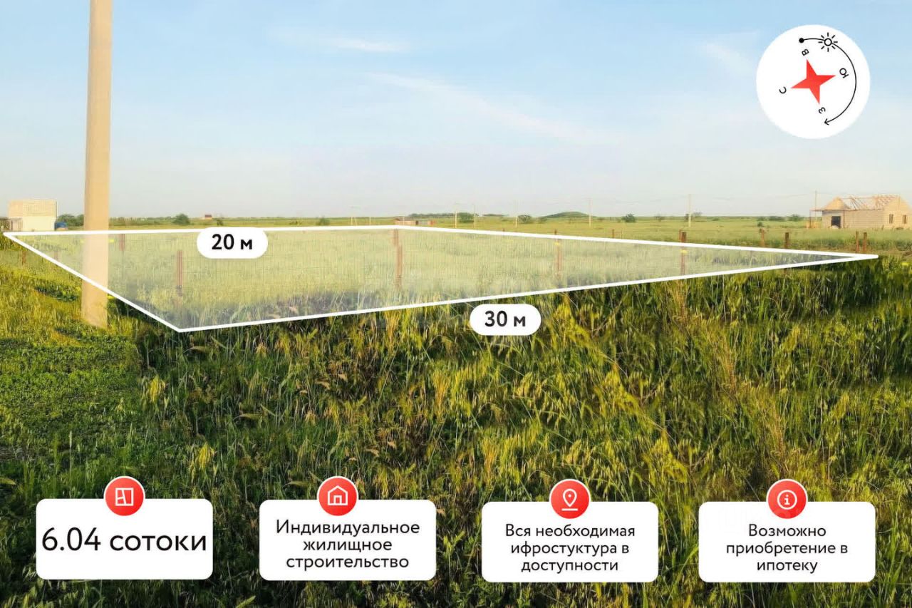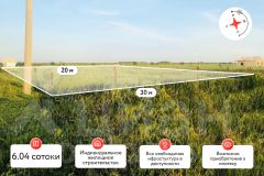 Участок площадью 6,04 соток, фасад 30 метров, глубина 20 метров.