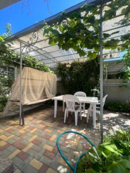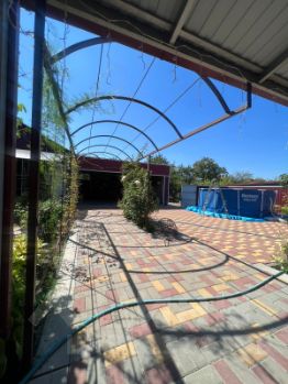 Во дворе имеется летняя кухня, подсобное помещение для хранения. Двор устелен тротуарной плиткой, имеется навес, зона отдыха.