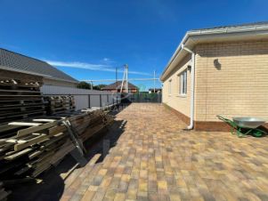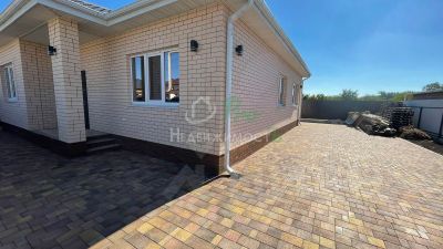На придомовой территории площадью 4 сотки расположен подвал (внутренние размеры 1,2 м * 3,5 м), в котором установлен насос и накопительный бак на 500 литров. Двор вымощен качественной плиткой, забор из металлического штакетника. Высококачественная внутренняя отделка.