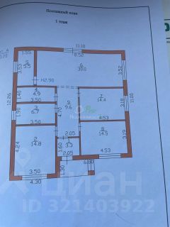 Общая площадь дома 109,1 кв.м., кухня-гостиная 30 кв.м., жилая площадь 43,7 кв.м. (14,8 + 14,4 + 14,5), санузел 6,7 кв. м., гардеробная 4,9 кв.м.