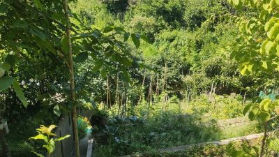 Площадь земельного участка по документам 5,9 соток. Категория земли- земли населенных пунктов, разрешенный вид использования земли дачных и садовых объединений граждан. Участок огорожен. На участке есть плодовые, деревья и бетонные террасы для овощей и зелени. Расстояние до морского пляжа 550 метров, по лесу, вдоль ручья Красный водопад. Земельный участок находится в черте города Туапсе и примыкает к жилому микрорайону Звездный.