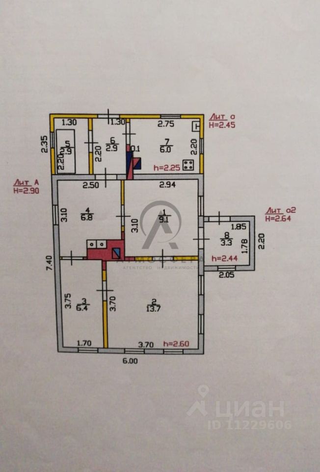 В нём есть прихожая, кухня, санузел и четыре комнаты.