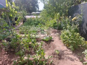 Ухоженный огород с плодовыми деревьями - яблоня, персик, черешня, виноград и пр.