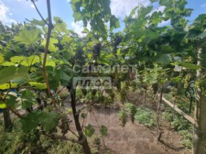Участок: 4,5 сотки земли облагорожен, с цветами, виноградом и плодовыми деревьями.