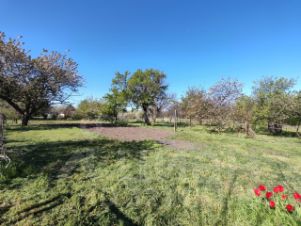 На участке 15 соток разбит большой цветущий сад: яблони, груши, черешня, абрикос, хурма, виноград...Свои фрукты весь летний сезон. Много места для реализации любых Ваших идей.