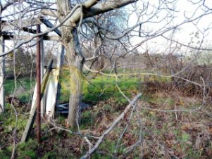 Участок большой. По всему периметру участка расположены всевозможные плодовые деревья( груша, яблоки, вишня, черешня, миндаль, грецкий орех и т.д.).