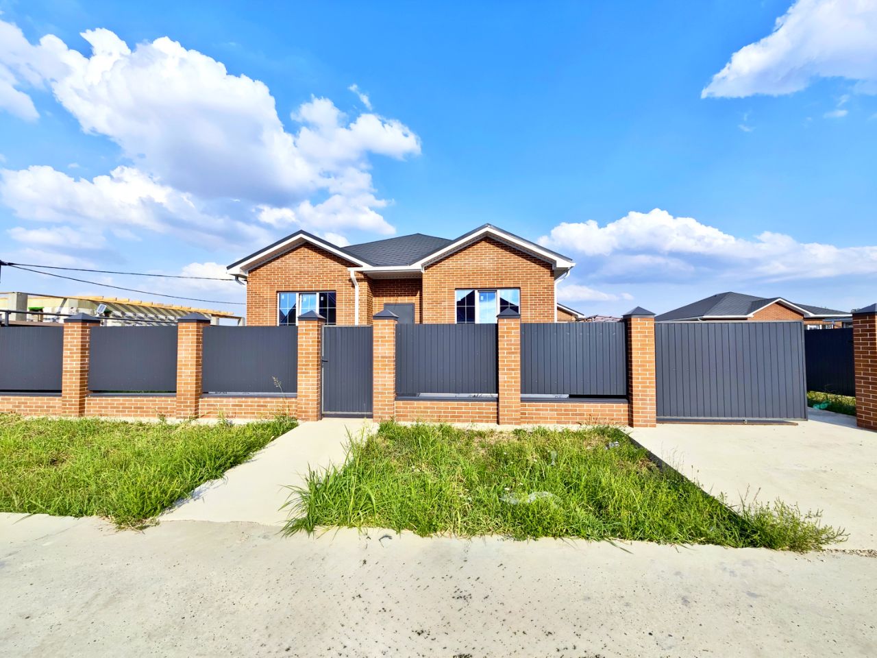 Дом расположен на территории коттеджного поселка, район уже обжитой, соседние дома — все новые коттеджи.