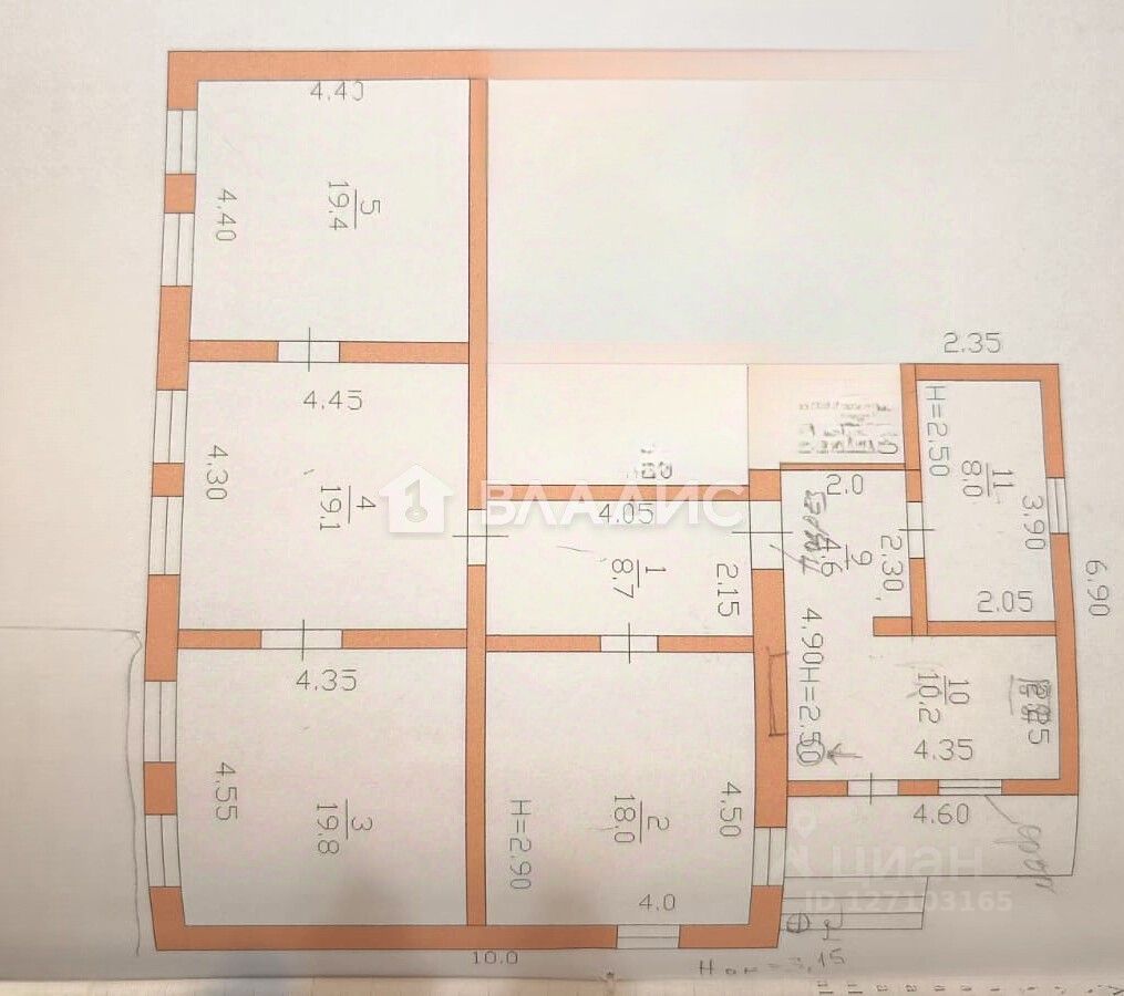 Три изолированные спальни 19,4 кв.м, 19,8 кв.м, 18 кв.м, зал 19,1 кв.м. совмещенный санузел в кафеле 8 кв.м, коридор 4,6 кв.м, кухня 10,2 кв.м, столовая 6 кв.м.