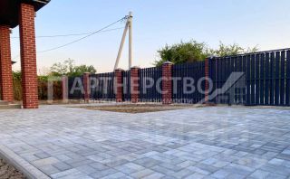 Во дворе тротуарная плитка, фасад откатные ворота.