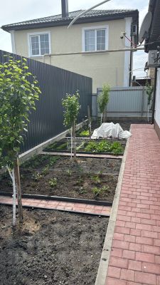 Выполнен ландшафтный дизайн, посажены плодовые деревья.
