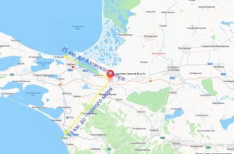 23 км. до г. Темрюк, 35 км. до станицы Голубицкая с ракушечными пляжами Азовского моря, 85 км. до Крымского моста и станицы Тамань, 55 км. до города-курорта Анапа.