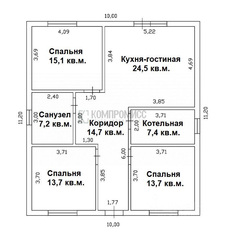 Площадь дома 100,2 кв. м.