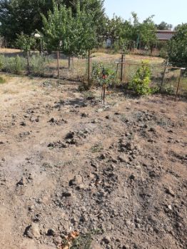 Имеются молодые деревья, разных сортов- 20 шт. Груши, яблоки, гранат, персики, инжир, черешня и много садовых цветов.