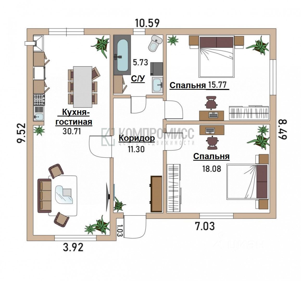 Дом мансардного типа, по первому этажу 86,2 кв.м. : 2 спальни, кухня-гостиная, коридор, санузел. Все комнаты удобные и просторные