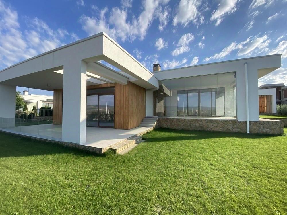 В доме: просторная кухня-гостиная, три спальни, три санузла, веранда с мангальной зоной, терраса, и крытая стоянкой для двух автомобилей.