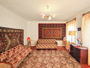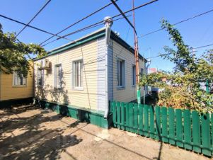 Турлучное домовладение, с внешней стороны обшито сайдингом, кровля - шифер, о.п. 45,6 кв.м., расположенное по ул. Ленинградская. Состоит из трех жилых комнат смежно-раздельного расположения, кухни, с/у и коридоров. Стены и потолки побелены, полы - дощатые. В кухне стены окрашены, потолки побелены, полы застелены линолеумом. С/у раздельный, окрашен краской. Установлены металлопластиковые окна. Счетчики на все коммуникации. Сплит-система. Автоматический газовый водонагреватель. Отопление - напольный газовый котел. Входная дверь - металлическая.