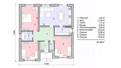 Дом, внутренней площадью 101,08 м2 (размер 11,3 м х 11,96 м):