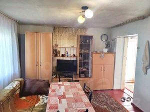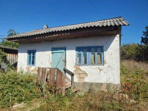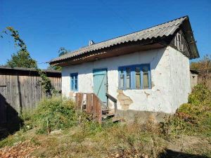 На участке стоит жилой саманный дом 44 м2, хоз постройки.