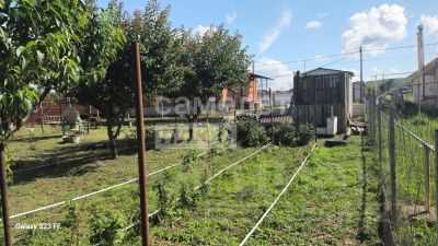 На заднем дворе вдоль дома сформирована и отсыпана площадка, установлены столбы под навес. Здесь есть несколько хозяйственных построек: металлический вагончик размером 3 на 4 метра, который можно использовать как мастерскую, и деревянная бытовка размером 3 на 3 метра, временно переоборудованная под курятник. На заднем дворе также расположены три водоразборные точки, две из которых находятся в огороде. Много плодовых деревьев: груша, персик, абрикос, нектарин, вишня и черешня. Прошлым летом абрикос дал обильный урожай. Также есть много кустов малины.