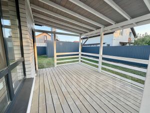 1-й этаж: просторная кухня-гостиная с выходом на террасу, прихожая, ванная комната.