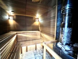 С террасы открывается выход к бассейну, рядом с которым расположена настоящая баня на дровах. Дополнительно — переносная мангальная зона для уютных вечеров.