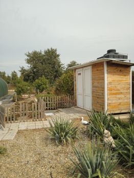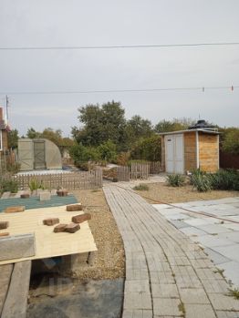 Двор забетонирован, есть навес для автомобиля, крытая зона отдыха, площадка под бассейн. На территории имеется хозблок, курятник, уличный душ и туалет. Участок 8.3 сотки ,территория огорожена, отличный фруктовый сад.