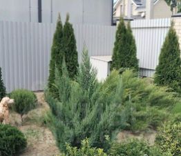 Придомовой участок забетонирован и высажены декоративные растения.
