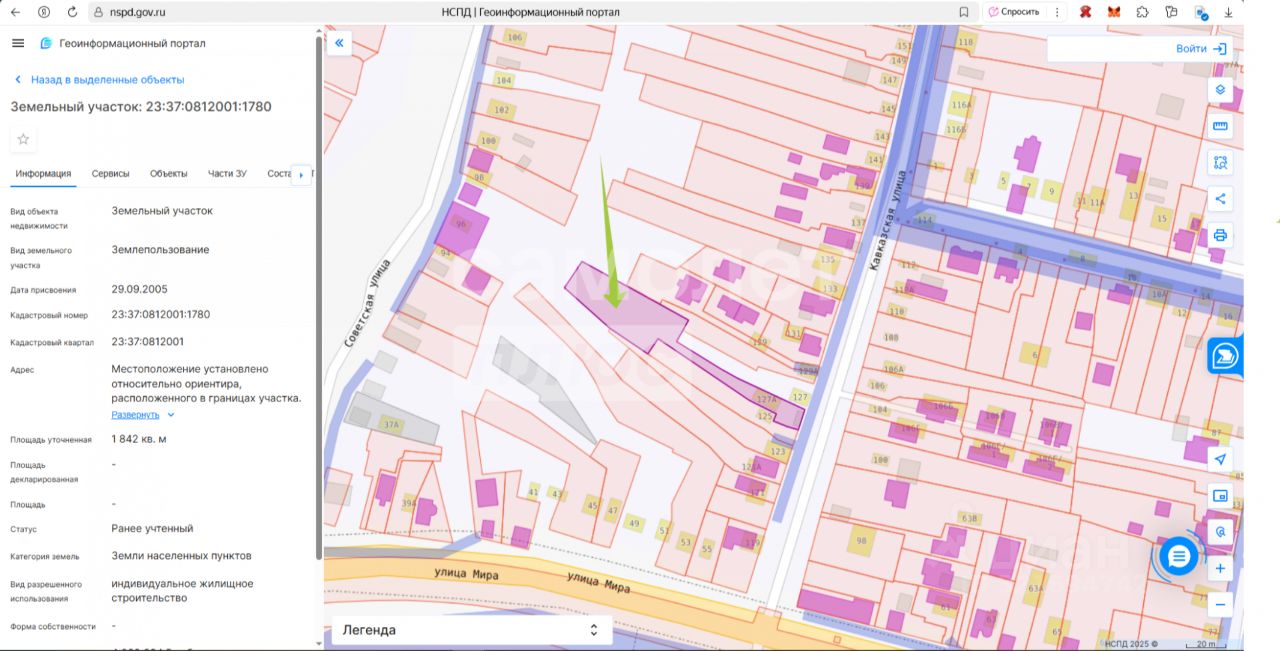 Арт. 116305037 Продам два участка одним лотом (ИЖС, ЛПХ) 26.5 (18,5+8) сот на центральной улице станицы Анапской.