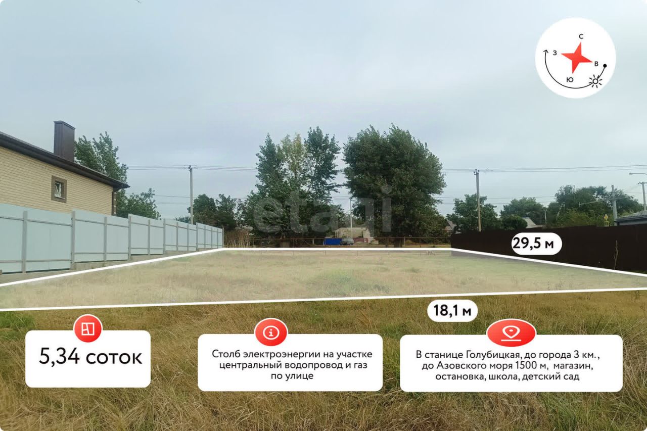 Продается уникальный участок в живописной станице Голубицкой площадью 5 соток, который идеально подходит для строительства вашего дома мечты! Участок находится в зоне с разрешенным использованием для индивидуального жилищного строительства, что открывает перед вами широкие возможности для реализации ваших идей.