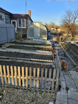 На участке расположены различные построики, такие как теплица, хозблок, летнии душ и санузел. Также имеется курятник, где можно держать домашнюю птицу. Участок обильно засажен плодовыми деревьями и кустарниками, что позволяет наслаждаться свежими фруктами и ягодами.