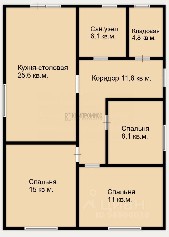 В доме 3 изолированные комнаты, кухня, коридор, сан.узел, кладовая/гардеробная.
