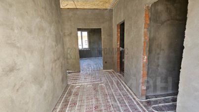 Полы выровнены стяжкой. Система теплого пола по всему дому, также радиаторы отопления в комнатах.