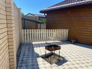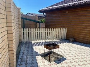 На участке расположены баня из натурального дерева, крытый бассейн с подогревом и уютная беседка — все готово для отдыха в любое время года. Территория ухожена, есть место для сада или зоны барбекю. Район отличается хорошей транспортной доступностью: до центра города — 5 минут на машине, в пешей доступности магазины, аптека и остановка общественного транспорта.