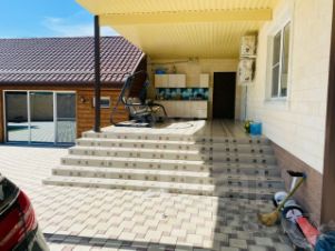 Дом расположен в курортном городе Горячий Ключ, в тихом районе с развитой инфраструктурой и живописной природой. Общая площадь двухэтажного здания составляет 231 кв. м. Участок — 11 соток, ровный, правильной прямоугольной формы, с широким фасадом 39,5 метров.