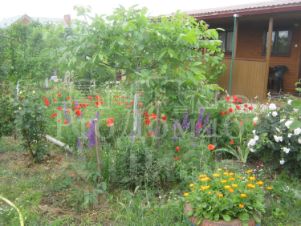 На территории участка находится летняя кухня, внутри отделанная вагонкой, и отдельно летний санузел (душ и туалет с унитазом). Кухонный электро котёл позволяет использовать горячую воду не только на кухне, но и в летней душевой. На кухне и в санузле свой септик. На кухне есть возможность подключать электрическую плитку или газовую (баллонную).