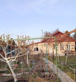 Централизованная подача воды, канализация септик. Во дворе имеется колонка, которая используется для полива сада и огорода. При выходе из дома под навесом построен небольшой деревянный коридор. Недавно был пристроен навес из поликарбоната для машины.