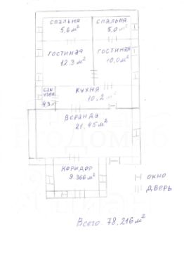 Общий объём жилой площади дома- 78,22 м.кв. Если не учитывать пристройки к дому: туалетную комнату, веранду и коридор при входе 43,1 м.кв. Это первоначальные параметры дома.