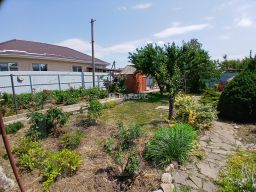 На участке площадью 8,6 соток расположен большой сад, хозблок, навес для авто, скважина. Подъезд к участку отсыпан щебенкой.