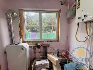 Материал стен дома- Керченский блок. облицован красным кирпичом, окна-металлопластик, все коммуникации: электричество, газ, отопление от газового котла, водопровод центральный, септик дренажный, внутренняя отделка дома и времянки под ремонт, стены, фундамент и крыша в отличном состоянии, в доме две жилые комнаты, санузел с ванной, прихожая.