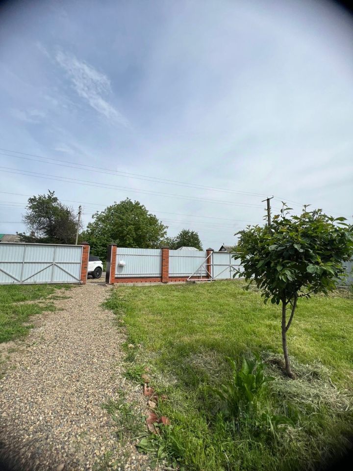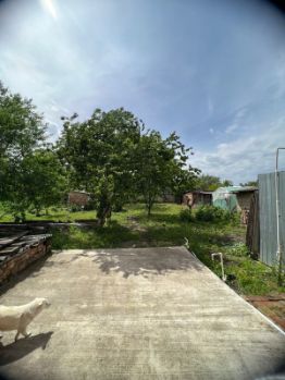 Очень просторный двор с озеленением.  На территории имеется летний душ, хоз. постройки, сад  огород, забетонированная площадка под террасу. Огорожен металлопрофильным забором с кирпичными колоннами и с двумя откатными воротами.