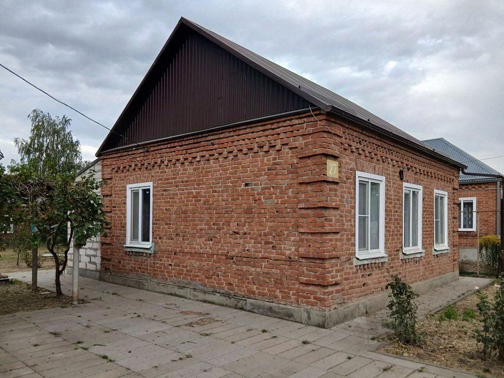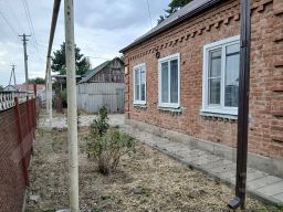 Хутор Северин. Жилой дом кирпичный дом по улице Красноармейской. 1964 г. п., общая площадь 54,6 кв. м. Три комнаты (13,0+10,4+7,6), кухня 10,3 кв. м, совмещённый санузел - 6,8 кв. м, прихожая - 6,9. Потолки 2,70 м. Газ, котёл, вода, все коммуникации. Свежий ремонт, МП окна. Есть хозпостройки, подвал. Двор - плитка. Фасад 25,70 м. Земельный участок 891 кв. м, ЛПХ. Возможна продажа с мебелью (по договорённости.)