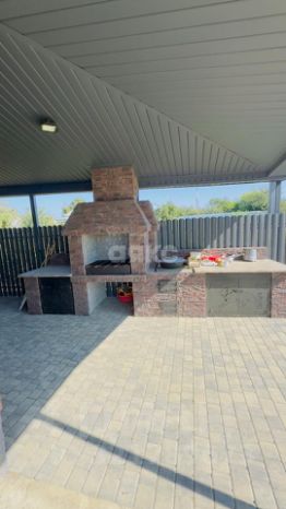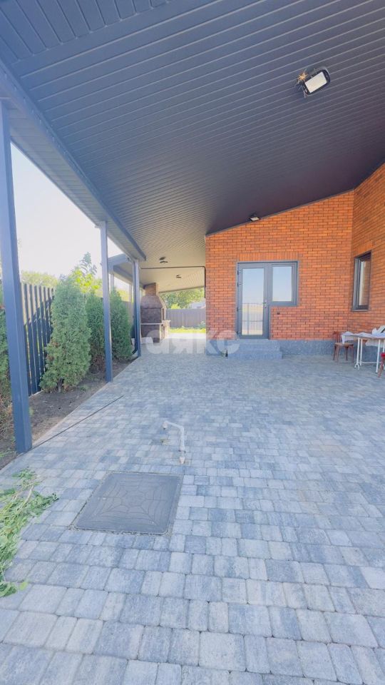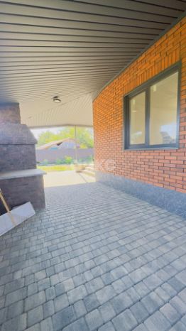 В доме сделана интересная и удобная планировка: 3 спальни, кухня-гостиная, теплые полы ( во всем доме), выполнена качественная предчистовая отделка, потолки подшиты гипсокартоном, есть выход на террасу. Во дворе  есть мангальная зона ( с выложенным из кирпича мангалом), двор выложен сухопрессованной плиткой, кованные ворота, капитальный навес, большой участок земли.