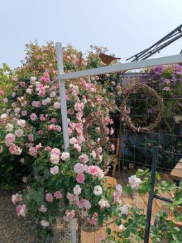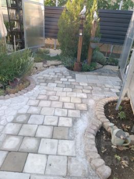 На участке есть дорожки из природного камня, цветочные кашпо и уютные уголки для отдыха. Всё создано с душой и любовью к природе.