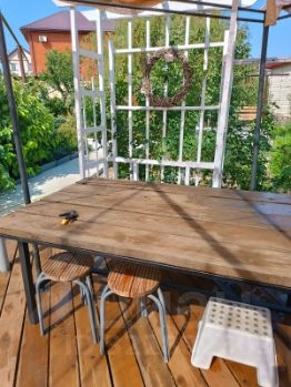 На участке — настоящий сад мечты: несколько сортов винограда, ароматные черешни, персики, яблоки, груши Участок красиво облагорожен, продумана каждая зона — идеально сочетаются зелень, цветы и декоративные элементы. Есть уютные цветники с яркими многолетними и однолетними цветами, которые радуют глаз весной и летом. Маленькие газоны и декоративные камни подчеркивают красоту природы и делают место более живым и гармоничным.Для любителей своего урожая есть две теплицы, а баня из дерева — для полного расслабления после трудового дня или прогулки.