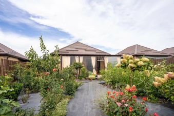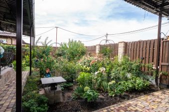 Весь участок ухожен: более 100 сортов роз, цветы, виноград, инжир, плодовые деревья, голубика и еще очень много красивых растений